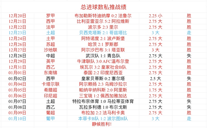 周一私推亚洲数据1场完美全胜拿下,亚洲数据成功连胜!总进球数1场走了,依然近17胜13,状态稳健!鸡锅私推会持续保持精挑细选原则,在精不在多,必须全胜起飞!