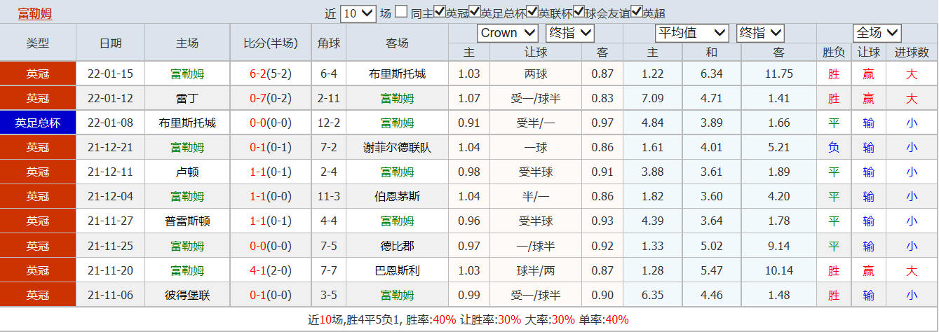 竞彩编号003 富勒姆vs伯明翰