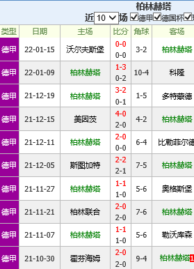 竞彩编号004 柏林赫塔vs柏林联合