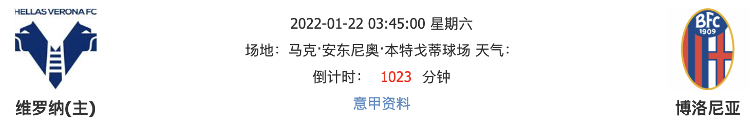 北京时间1月22日03点45分,意大利甲级联赛的一场焦点之战,维罗纳在主场迎战博洛尼亚。博洛尼亚连续落败,此番是不是凶多吉少?