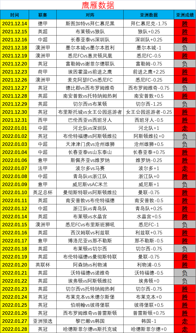 各位好,我是鹰雁,本人潜心研究亚洲数据走势变化及两队基本面之间的逻辑辩证关系,擅长结合热度走向分析足球,主攻亚洲数据,见解独特。作为15年的足球狂热分子,对足球历史数据,球队战术、状态及其心理素质综合面分析庖丁解牛,留下精华,希望能与各位共同分享足球带来的快乐!