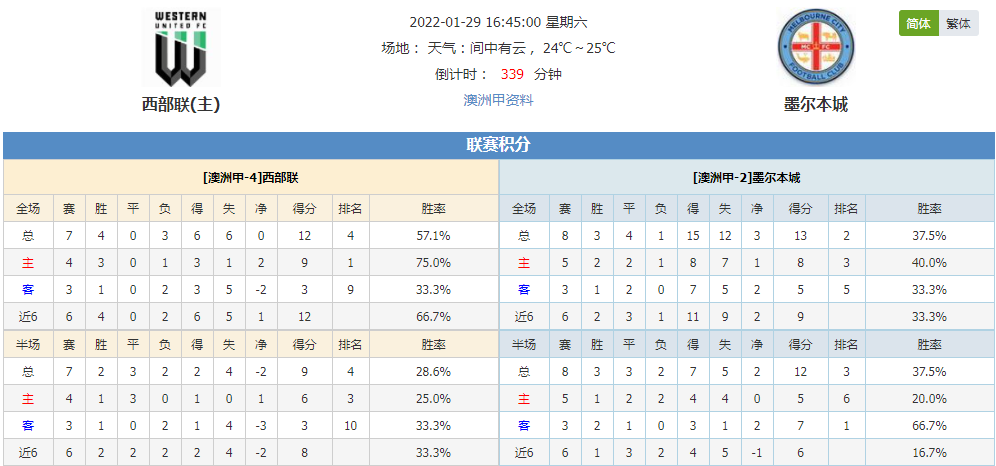 北京时间1月29日16:45,澳洲甲第12轮赛事,西部联对阵墨尔本城。西部联上一役主战败对手遭遇连续打击,赛季初的连胜势头是否消磨殆尽?墨尔本城状态回暖上仗战胜后再回胜轨,相比西部联他们表现更为理想,球队此役能否为争冠目标抢走分数?