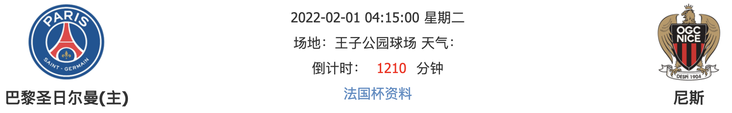 北京时间2月1日04点15分,法国联赛杯的一场焦点之战,巴黎圣日耳曼在主场迎战尼斯。上次交手,尼斯客场逼平大巴黎,此番能否再续神奇?