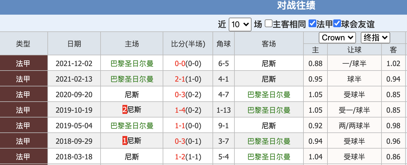 周一 巴黎圣日耳曼vs尼斯