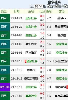 2、在上场比赛主场与赫塔菲握手言和之后,皇家社会已经连续5场比赛保持不败,其3胜2平的近战成绩比较让人满意。