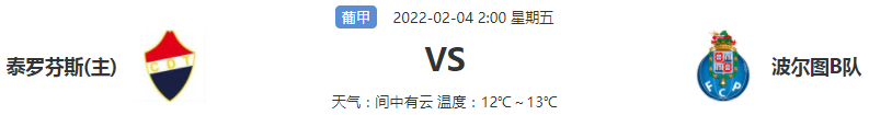 北京时间2022年02月04日02:00,葡甲一场比赛,泰罗芬斯vs波尔图B队,两队实力差距不算大,本场比赛结果会如何,让我们拭目以待。