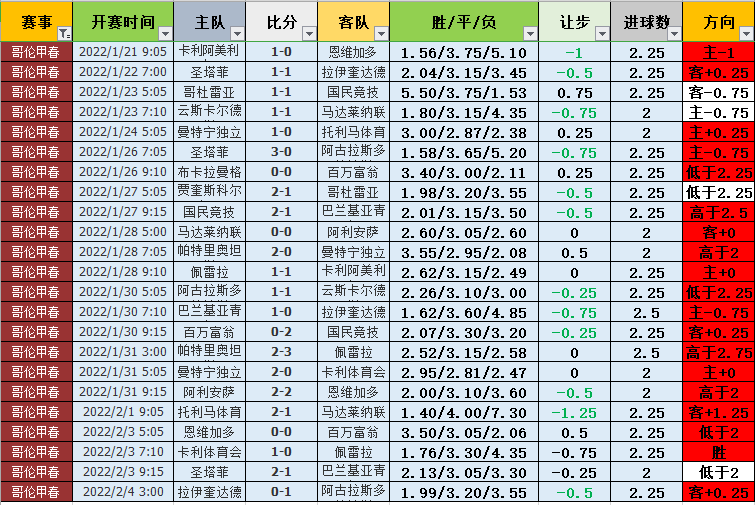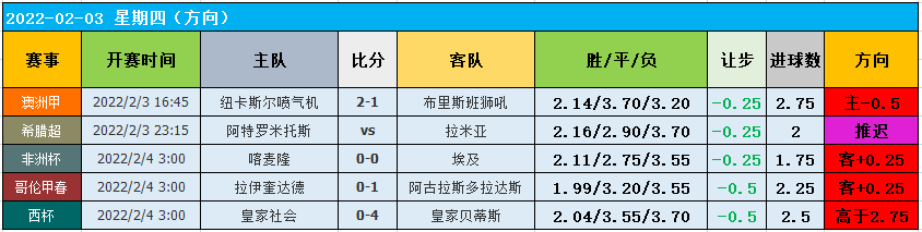 上期数据表现出色,晚场的5场比赛除去推迟的以外剩余的4场全部打出,又拿下一期大满贯!上期数据中,澳洲甲的表现不错,在上半场九率先拿下优势,在下半场继续保持优势至结束,轻松拿下数据,非常的漂亮!而哥伦甲经历短暂的失利后,重新完胜拿下数据,非常的稳健!当然杯赛的表现也是让人惊喜的,其中非洲杯继续稳稳拿下,无论是让步或者是进球数都是完胜拿下,非常的出色。而西杯进球数也是完胜拿下,非常的不错!近期非洲杯的表现是非常的高光,近33胜22,打出率高达67%,比较的稳健!而英冠的表现更出色,近23胜17,打出率高达74%!哥伦甲新赛季的表现是非常不错的,近23胜19,打出率高达83%!希腊超近13胜10,打出率高达77%!今天的比赛较多,笔者挑选了部分晚场比赛出来作为本期的参考,希望能够打出对应的高概率方向!