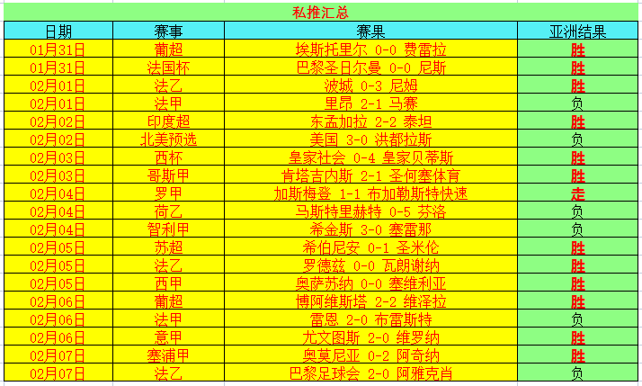 昨天2胜1,塞浦甲非常舒服拿下,阿奇纳+1.25数据,结果阿奇纳直接客场取胜了。近期私推取得12胜1走6负,净胜6场,整体表现还不错,今天赛事整体质量还是很高的,今天将继续私推2场信心最高的,欢迎大家关注一下,全力争取2场全胜,期待支羽为大家带来精彩的表现!