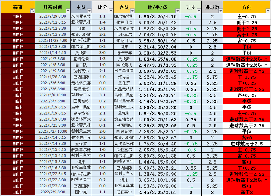 上期数据表现一般,晚场的5场有3场顺利打出,夜场的9场有4场顺利打出!上期数据中,晚场的葡甲继续高光表现,4-1大比分轻松拿下进球数的方向!而土杯的表现也不错,3场有2场顺利打出对应的高概率方向!夜场的表现不甚理想,其中英超全线溃败实在是意想不到,基本都是在下半场给灭掉的,非常的痛心!而英冠和英甲则是表现平稳。当然哥伦甲的表现依旧强势,除去推迟的比赛外剩余都是全胜打出,非常的稳健!而新赛季的自由杯表现也比较满意,顺利打出对应的高概率方向!近期英冠的表现出色,近28胜21,打出率高达75%!哥伦甲新赛季的表现是非常不错的,近36胜28,打出率高达78%!希腊超近14胜10,打出率高达71%!今天的比赛较多,笔者挑选了部分夜场比赛出来作为本期的参考,希望能够打出对应的高概率方向!