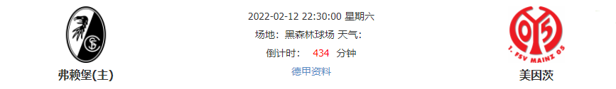北京时间2月12日的晚上22点30分,德甲联赛的第22轮的赛事继续上演多场精彩对决,其中劲旅弗赖堡将会坐镇黑森林球场迎来美因茨的挑战!目前刚被“挤出”欧冠区的弗赖堡能否借助主场之势击退对手重返其中?还是美因茨一改本赛季的客场疲态在本轮绝地反击?