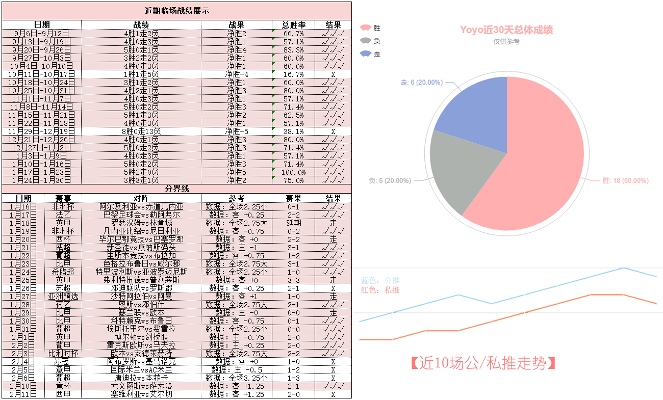 昨晚周五西甲艾尔切最后时刻连续跪下十分遗憾,近期临场私推状态有所起伏!不过不要慌,一切仍然处于平稳回调阶段!——今天重点参考场次已经确认,信心依旧,Yoyo继续在虎年陪您们共创佳绩~