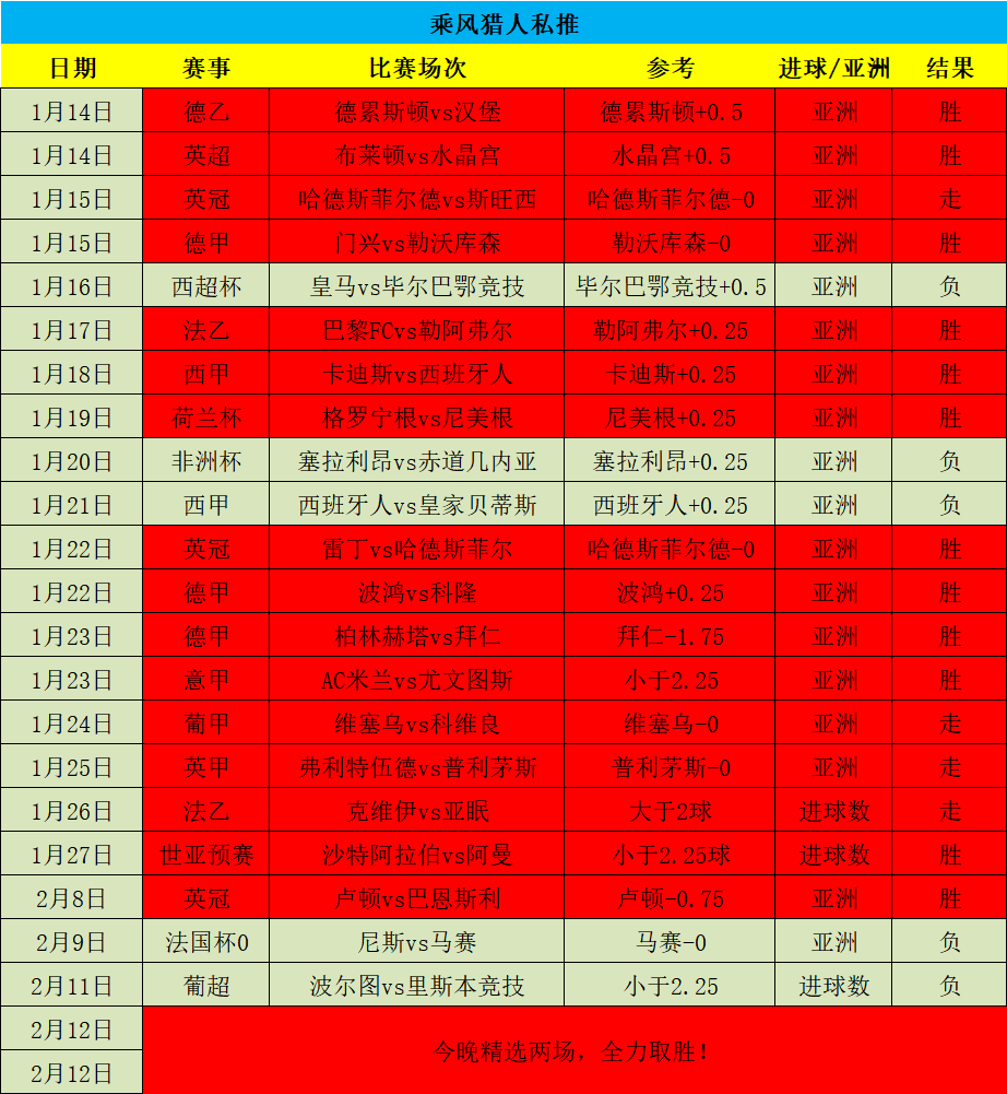 私推近期11场负2场,不败率81%!近8胜6+17胜12,昨日遗憾失手,今日赛事非常的多,晚间会精选信心2场赛事,全力再出击,继续吃肉,兄弟们抓紧一起冲!