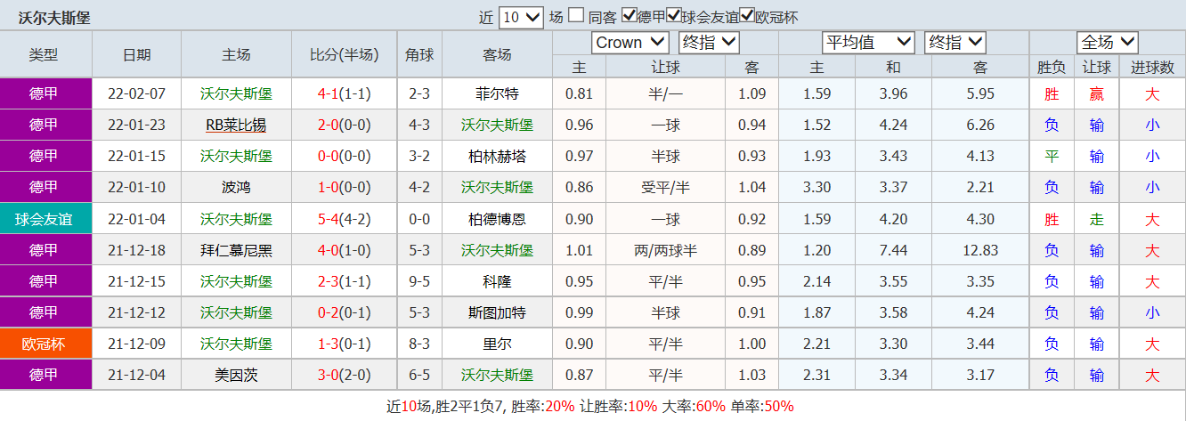 竞彩编号010 法兰克福vs沃尔夫斯堡