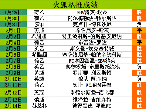 昨天火狐临场送出的苏总杯赛事,邓迪FC客场3-0战胜彼得黑德,比赛顺利打出,临场喜获四连胜,近14场精选取胜11场,今天精彩继续!