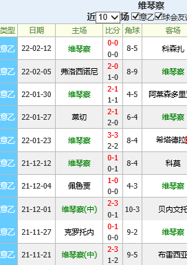 2、近期维琴察依旧处在动荡不定的局面中,在上轮比赛主场与科森扎互交白卷后,此前6轮比赛下来,他们只是取得1胜2平3负的不佳战绩。