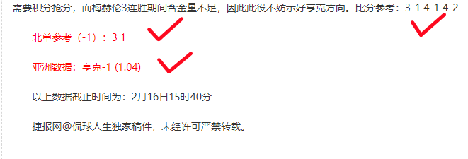 昨日精选一场 比甲 亨克vs梅赫伦顺利打出,比分打出!近38胜28!胜率73.7%!!表现相当出色且稳定!期待今日持续出色表现!!!回顾昨日比赛,亨克对阵梅赫伦两队的真实实力定位在0.5左右,但是本场比赛开出主让1中低数据显然示好亨克,后市上升数据能够有效降低亨克热度,最终亨克主场4-1大胜梅赫伦顺利打出!!!