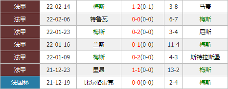 在上轮主场迎战劲旅马赛的赛事,梅斯以1-2的比分不敌对手,过去3轮赛事仅获1平2负表现不佳,其中两场更是遭对手零封,进攻端状态较为乏力。不过呢,梅斯在近期客场的表现尚可——最近4个客场之旅,取得了1胜3平的不败表现,其中包括1-1战平法甲传统劲旅里昂的比赛,客场能力在法甲联赛中能够排在第9的位置,这无疑是球队本赛季少有的高光时刻。