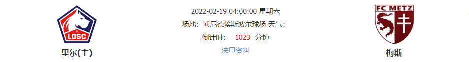 北京时间2月19日的凌晨04点00分,法甲联赛第25轮的全新一圈将会率先迎来一场较量——由上赛季的法甲冠军里尔坐镇博尼德埃斯波尔球场迎来保级球队梅斯的挑战!本赛季状态下滑明显的里尔能否借助主场之势全取三分追赶欧战区?还是近期客场表现不俗的梅斯无惧困难再度反客为主?