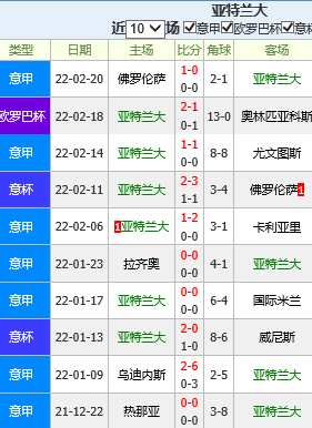 2、亚特兰大的客场表现要优于其主场,联赛13轮客场比赛下来,他们取得了9胜3平1负的成绩,其中进球数多达26粒,攻势不弱。