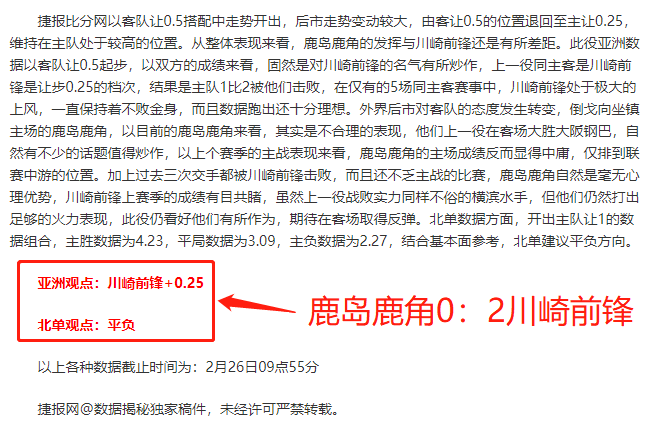 昨日双胜!数据揭秘昨日早场对日职联赛事的分析,最终川崎前锋2:0轻松战胜鹿岛鹿角,准确打出了数据。晚场对英超赛事的分析,阿斯顿维拉2:0战胜布莱顿,当天再次打出数据!目前成绩近21场胜15场,整体成绩十分稳定。今天晚场再次选取信心赛事进行详细分析。