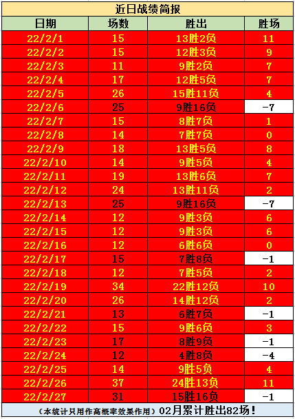 大数据栏目:本栏目将当天的赛事列出经由大数据分析得出的任何高概率选项供网友参考(期间若连续2天总胜率低于50%,将免费1期补偿)。现时大数据分析逐渐融入我们的生活当中,任何一个动作都能参照历史数据得出下一个行为是什么。足球作为一项竞技体育赛事,自然也离不开大数据的分析,在可供查找的数据中我们可以经过特殊的算法得出赛事的某些选项高频概率,而本栏目正是因此而创建。