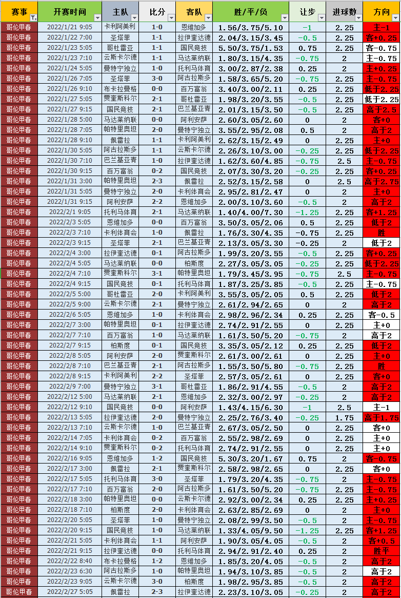 上期数据表现一般,早场的10场有3场顺利打出,晚场的10场有4场顺利打出,夜场的11场有8场顺利打出!上期数据中,早场的表现不尽如意,多场未能打出对应的方向,尤其是韩职,居然在90分钟连续打进2球逆转结果,真的是非常的无奈!晚场的表现一般,其中智甲、法甲、土超和西乙的表现最佳,都是大获全胜拿下数据,非常的精彩!夜场的表现出色,多场比赛都顺利打出对应的高概率方向,非常的精彩!当然最出色的还是美洲的哥斯甲,进球数以1-3大胜拿下,非常的精彩!近期英冠的表现出色,近48胜34,打出率高达71%!哥伦甲新赛季的表现是非常不错的,近60胜45,打出率高达75%!希腊超近19胜12,打出率高达63%!法乙近32胜21,打出率高达66%!哥斯甲近20胜16,打出率高达80%,非常的稳健!今天的比赛较多,笔者挑选了部分夜场比赛出来作为本期的参考,希望能够打出对应的高概率方向!