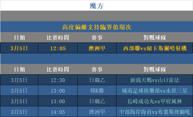 利用「魔方關系」進行支持趨勢預測分析(所有數據均結合中國競彩(主)、亞歐數據作為分析體系),超越臨界數值之上可視為低機率方向,此方式對比賽方向分析有顯著幫助效果。