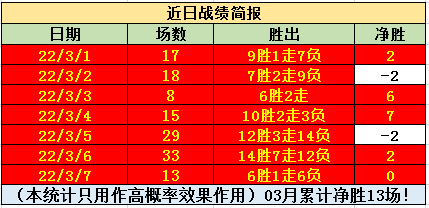 上期数据表现不错,晚场的6场有3场顺利打出,夜场的7场有4场顺利打出!上期数据中,晚场的俄超表现不错,主场2-1拿下对手,比较的轻松!而土超的表现让人失望,2场均未能打出对应的方向,颇为无奈的!夜场的表现不错,其中西系联赛表现最出色,2都是在主场大获全胜拿下数据,非常的精彩!当然早上的哥伦甲表现同样出色,进球数方向完胜打出!近期英冠的表现出色,近55胜36,打出率高达65%!哥伦甲新赛季的表现是非常不错的,近69胜52,打出率高达75%!希腊超近20胜12,打出率高达60%!法乙近34胜22,打出率高达65%!哥斯甲近28胜19,打出率高达68%,非常的稳健!自由杯近12胜11,打出率高达92%,非常可观!日职联新赛季近22胜16,打出率高达73%!今天的比赛较多,笔者挑选了部分夜场比赛出来作为本期的参考,希望能够打出对应的高概率方向!