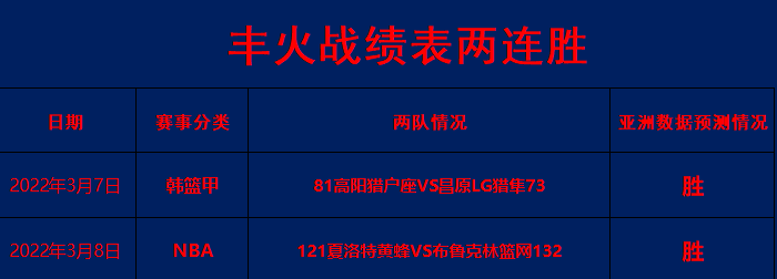 丰火在经历了前段时间的低迷之后,近期取得近2胜2的战绩,胜不骄败不馁,丰火在上一周精选推10胜6,成绩也是有目共睹的,丰火务必给予大家最为准确的赛事预测。