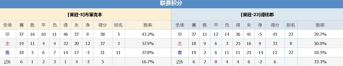 北单编号:30 布莱克本vs德比郡