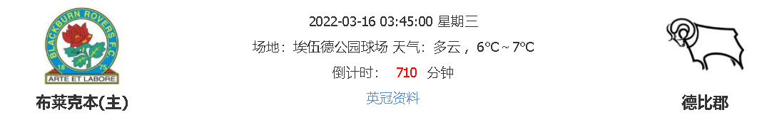 北京时间3月16日03:45,英冠联赛第38轮比赛,虽然本场双方联赛位置悬殊,但是近期同样处于低迷时期,作为主队方的布莱克本自身也并不好过,面对努力保级的德比郡,有没有能力拿下关键的三分?让我们拭目以待!