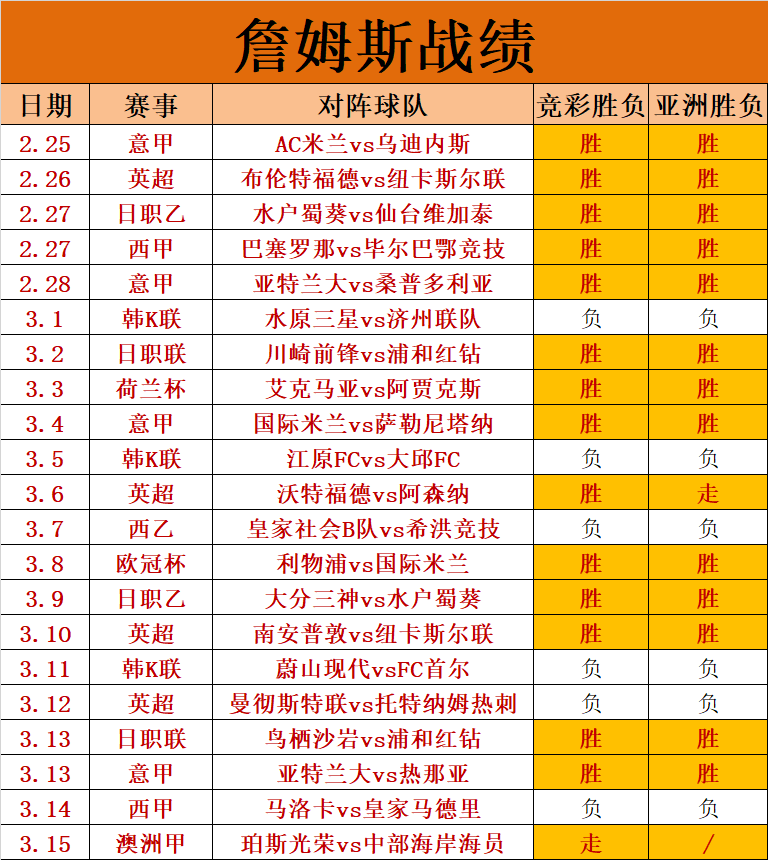 我是詹姆斯帕克,长期从事足球数据整理工作,曾任opta数据模型分析员。擅长足球大数据下找出冷门,结合历史数据准确判断各大数据变化的尺度,自创八维分析模型。