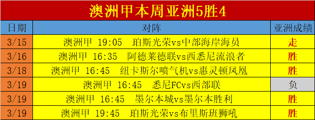 澳洲甲本周成绩:
