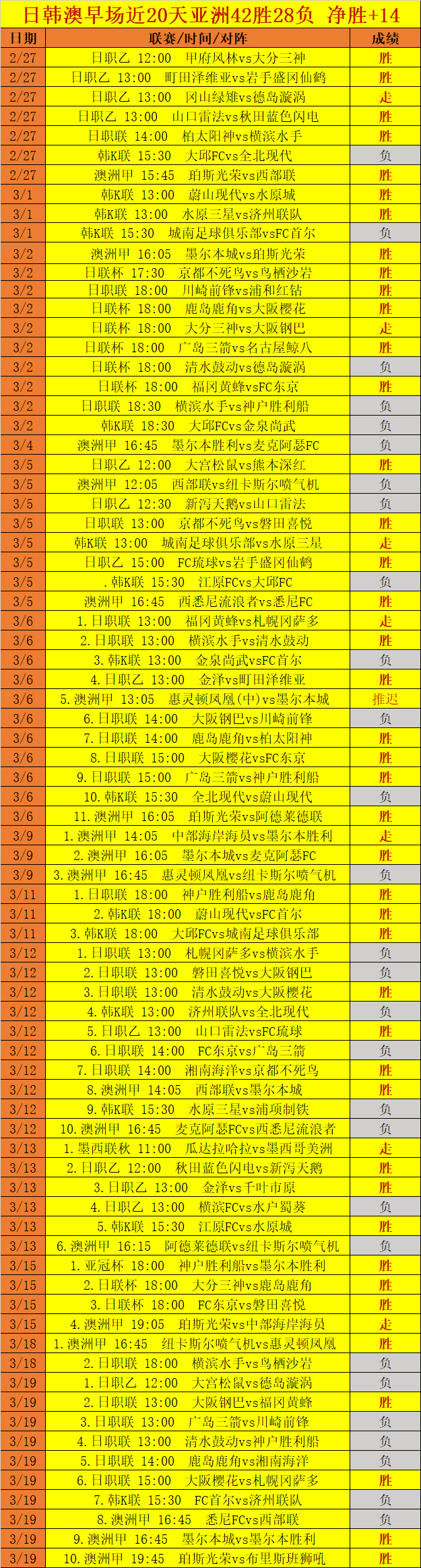 日韩澳早场近20天成绩: