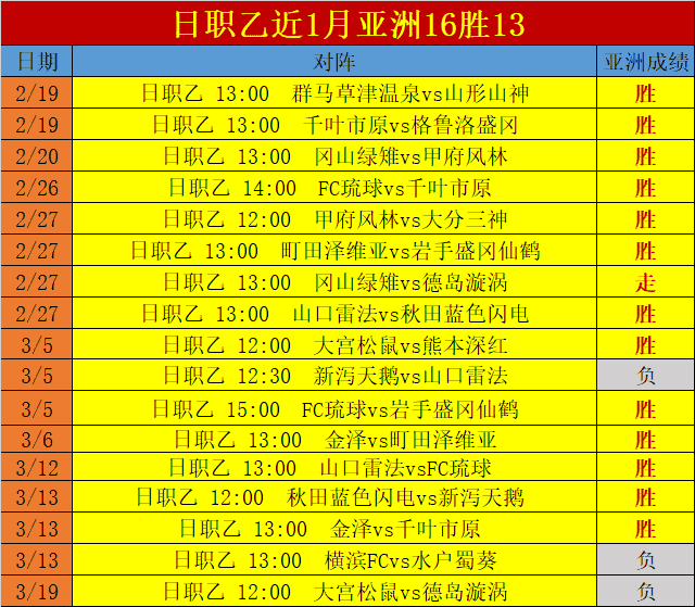 日职乙近1月成绩: