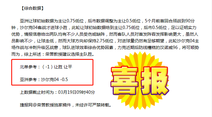 上轮教授精选德乙早场赛事:沙尔克04vs汉诺威96,从基本面阐述两队整体实力与近期状态,结合阵容伤缺与让球数据,大球数据走向,给出此轮必有进球,而主队沙尔克04主场作战与冲刺升级区战意,球队进球效率综合优势因素,客队汉诺威96客战后防组织的不足,信心选择主队主场取胜,最终交出2比1结果,迎来三连胜,荣誉教授近期在让球,受让,大球,小球各种建议方式均能做出精彩解读与精准结果,此轮为大家精选西甲赛事精彩解读:弱旅与上游对话,上游客战能否轻易拭敌,期望与鼎力支持的伙伴们继续共创佳绩!