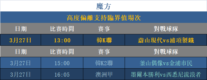 利用「魔方關系」進行支持趨勢預測分析(所有數據均結合中國競彩(主)、亞歐數據作為分析體系),超越臨界數值之上可視為低機率方向,此方式對比賽方向分析有顯著幫助效果。