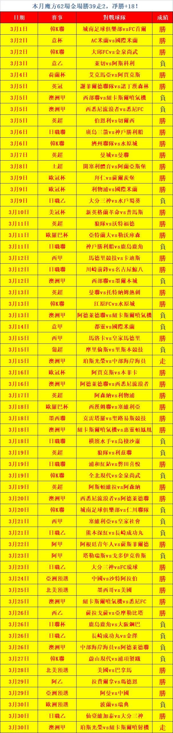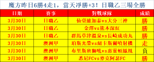 魔方昨日6場賽事勝4走1,當天凈勝+3,日職乙專場3場全勝,狀態十足!高度偏離支持臨界值場次整體狀態持續穩定,取得本月高度偏離支持臨界值場次62場勝39走2,凈勝+18的穩定成績!魔方將繼續努力,追求精益求精。