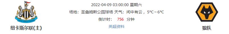 北京时间2022年04月09日03时00分,英超联赛第32轮比赛,纽卡斯尔联主场对战狼队,纽卡斯尔联最近3轮联赛都遭遇失利,本轮主场能否重回胜轨?狼队上轮联赛主场取得胜利,本轮客场能否有所作为?