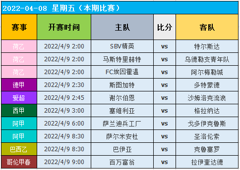 今天的比赛较多,笔者挑选了部分夜场比赛出来作为本期的参考,希望能够打出对应的高概率方向!