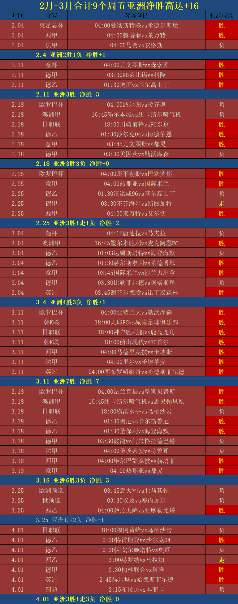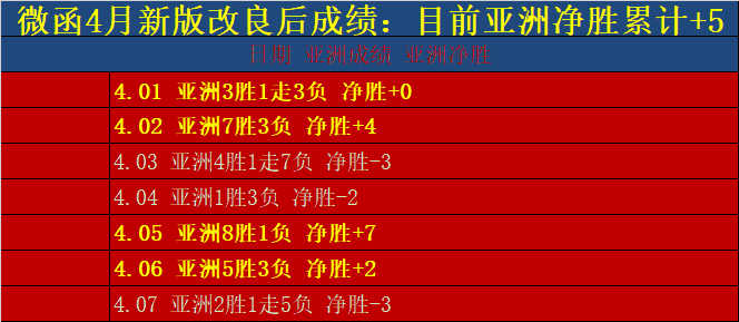 精彩分享:昨天成绩出现了波动,起伏实属正常,关键需要关注的是近期表现与整体表现,目前近3天累计取得的亚洲净胜为+6,而升级改版的4月微函球道保持着净胜+5的发挥,成绩就是实力的最清晰见证,是信心的强有力依靠。今天周五,微函球道周五表现保持着出色发挥,2月-3月共9个周五,9个周五累计取得亚洲净胜+16,9个周五仅出现一个周五为负值成绩,周五的出色表现为今天信心提升很大。微函球道升级全新改版,五大核心技术精湛分析球队情况,利用读取球队真实基本面展示球队网状图、网状态反馈内容读取、欧亚数据变动来龙去脉拆解、鲜为人知球队恩怨情仇内参资讯、清晰的微函球道比赛方向观点提供。每项内容均为经验累积总结所得,行内独创,行内领先,比赛方向更为清晰可见。