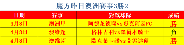 魔方昨日澳洲賽事專場3勝2!高度偏離支持臨界值場次整體成績穩定,取得82勝48走3,凈勝+17的穩定成績。魔方將繼續努力,追求精益求精。