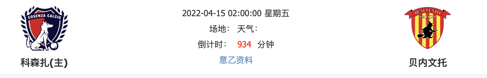 北京时间2022年04月15日02点00分,科森扎目前积分排行榜第18,贝内文托目前积分榜第5,在双方实力悬殊的情况下,客队有望载誉而归吗?