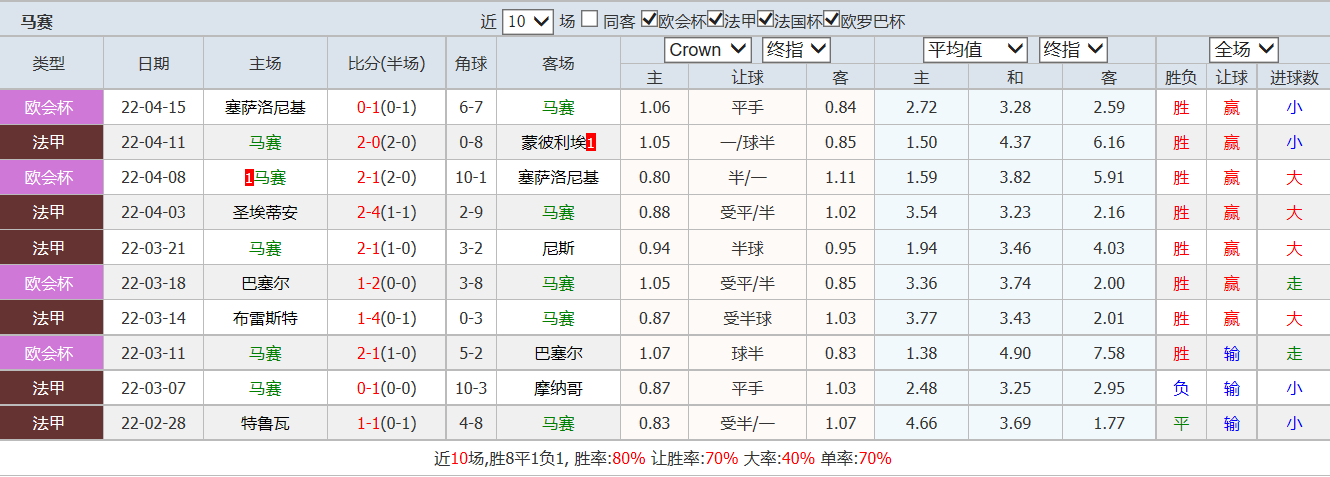 马赛作为法甲强队,球队整体实力也较强,本赛季联赛赛事取得17胜8平6负的成绩,成绩排名第二。球队近期状态也不错,上场联赛主场面对蒙彼利埃,球队场面上持有控球优势,在比赛上半场开局不久球队即成功轰入1球,之后通过点球机会再进1球,比赛下半场两队都未有作为,最终以2-0的比分战胜对手。