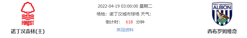 北京时间2022年04月19日03时00分,英冠联赛的一场焦点比赛,由诺丁汉森林主场迎战西布罗姆维奇,双方过去10次交战都取得3胜4平3负,不分伯仲,那么本场胜利究竟花落谁家?我们一起来看看。