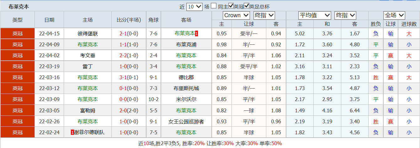布莱克本作为英冠中上游球队,球队整体的阵容和实力尚可,本赛季联赛赛事取得17胜12平13负的成绩,目前排名第八。球队近期状态持续下滑,目前赛事四场不胜,上场联赛客场对战彼得堡联,两队场面上表现相当,上半场两队都未实现破门机会,下半场时,球队率先轰入1球,不过紧接着便被扳平了比分,可惜临近末段,球队再丢掉1球,最终以1-2的比分战败。