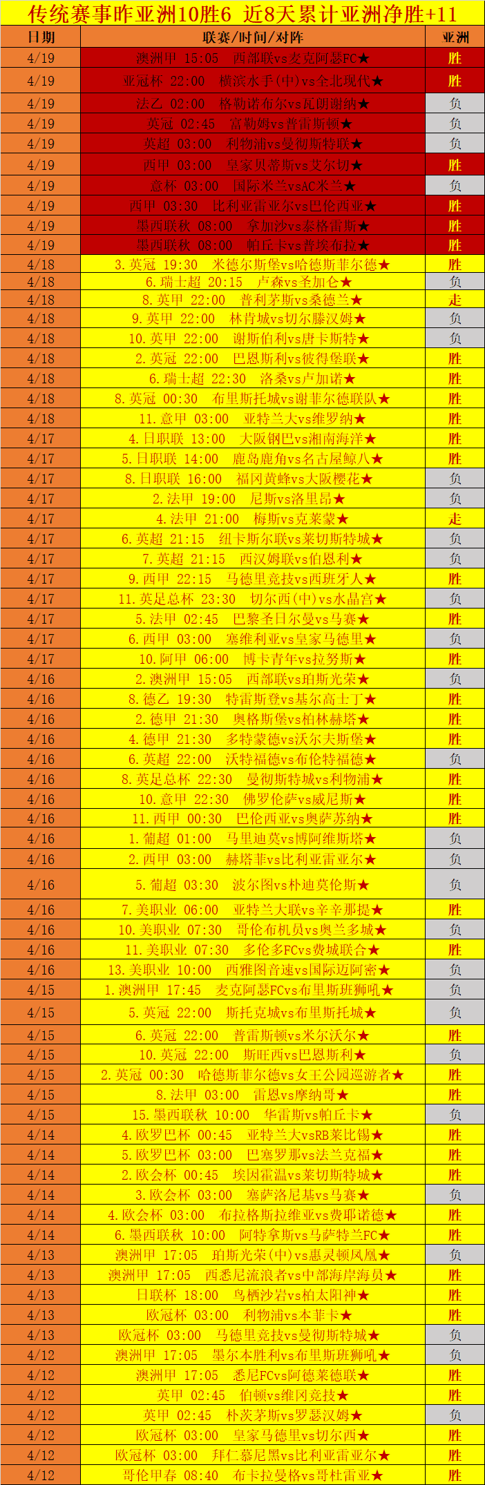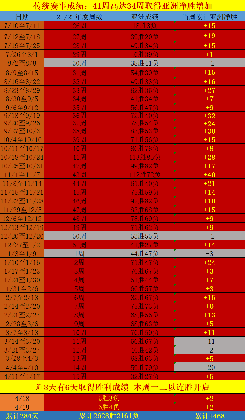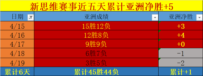 (三)成绩回顾:昨天进行的CDA数据模型赛事分析,新思维赛事还没有全部结束。在完场赛事里,传统赛事继续拿下胜利,取得亚洲净胜+2成绩,目前传统赛事一路下来,以频繁取得胜利成绩进行呈献,近8天的传统赛事高达6天以胜利成绩展示,本周一二也以连胜成绩开启。传统赛事作为CDA数据模型的拿手好戏,继续传承着过去优质发挥的实力。传统赛事过去能打造如此优质的净胜成绩单,将来同样具备如此能力,局部的颠簸偶然存在,概率学家对其进行再度优化更新,优质展现立竿见影,传统赛事依然是CDA数据模型实力展示的招牌,继续保持与其并肩作战显然效果更佳。CDA数据模型目前已经开启两种思维模式对赛事方向进行分析:分别为传统思维赛事模式,即是过去CDA数据模型一直沿用的赛事分析思维,4月中旬开始采用更为严格的筛选要求,符合要求的赛事将变少,高质量设置为首要目标,是CDA数据模型的核心技术,观点价值更佳,往后简称为传统赛事;新思维赛事模式,采用全新的赛事分析思维,经过概率学家长期的成绩复核得以推出,作为新起之秀,期待出现更多优质的表现,往后简称为新思维赛事。一场比赛信息面波谲云诡,外界利用信息面的不对称,达到他们所希望的目的,我们唯一能做的不是寻找更多信息面,而是通过数据面的复杂计算,了解他们的目的,做到知己知彼、百战不殆。