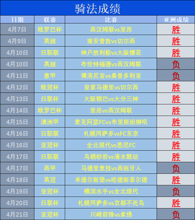 上一场比赛与大家分析了亚冠杯川崎前锋vs柔佛的比赛,骑法此前分析日韩球队在本届亚冠杯比赛表现相对偏弱,不过经过一轮思索之后依然认为是川崎前锋方面更加值得信任,而本场比赛开赛后,川崎前锋表现却是相当的疲弱,而柔佛也是处于游离状态,双方本场比赛基本是以闷平结束,最终比分停留在0:0完场,骑法对于本场比赛的预测方面没有成功打出,目前近战成绩是17场12胜!净胜增长+7!!上月骑法以较少的场次获得净胜+8!拿下作者月榜的第二名!本月再接再厉,精心挖掘正确场次,今天与大家分享一场来自亚冠杯的比赛神户胜利船 vs清莱联,争取以成功的分析再获大家的青睐,在新的一天再接再厉,希望大家可以多多支持!