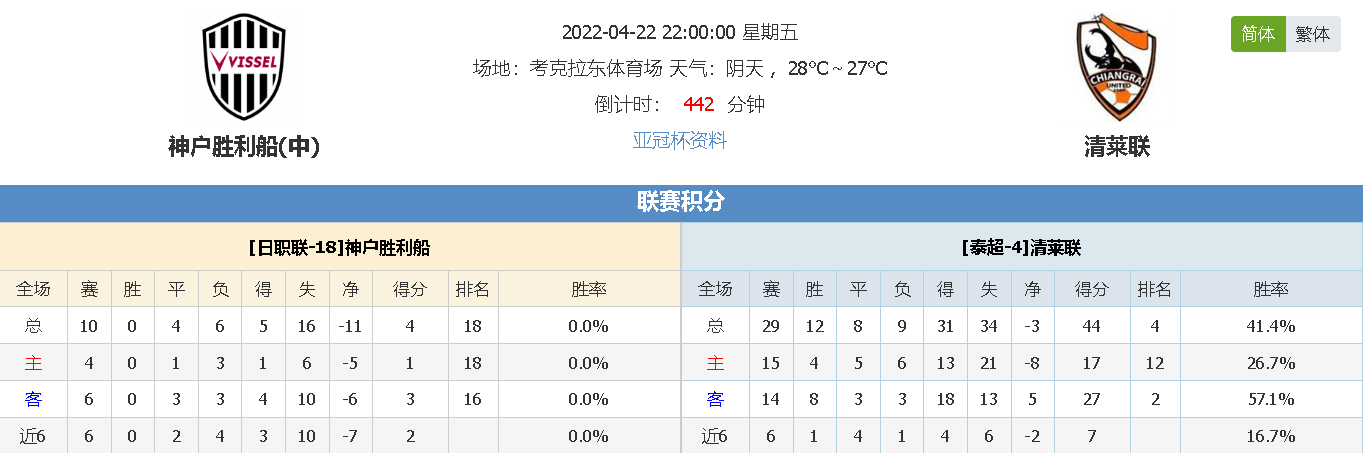 北京时间4月22日 22:00,亚冠杯2022赛季小组赛J组第2轮比赛,日职联劲旅神户胜利船vs清莱联,清莱联亚冠首战负于香港球队杰志,此役能否从神户胜利船手上取得分数?让我们一起关注!