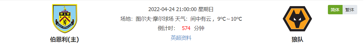 北京时间4月24日21:00,英超联赛第33轮的对决,伯恩利主场迎战狼队,伯恩利在降级区挣扎,但近期重新看到了希望,狼队近期胜负交替,联赛无欲无求心态会有变化吗?我们拭目以待。
